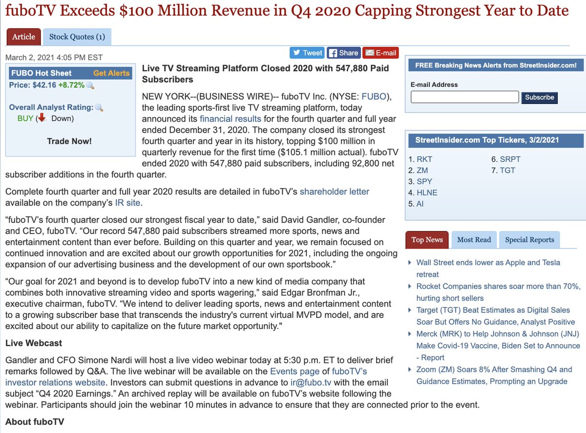 Rooms Rankings Earnings Newsletters Shop. FUBO TV stock is trading at 3161 in the post-market at the time of writing up 105 from Tuesdays close. And that forecast may be optimistic.